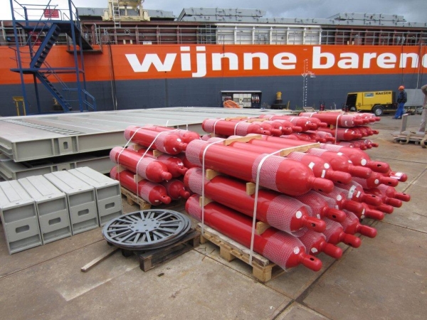 De CO2-flessen voor de brandblusinstallatie