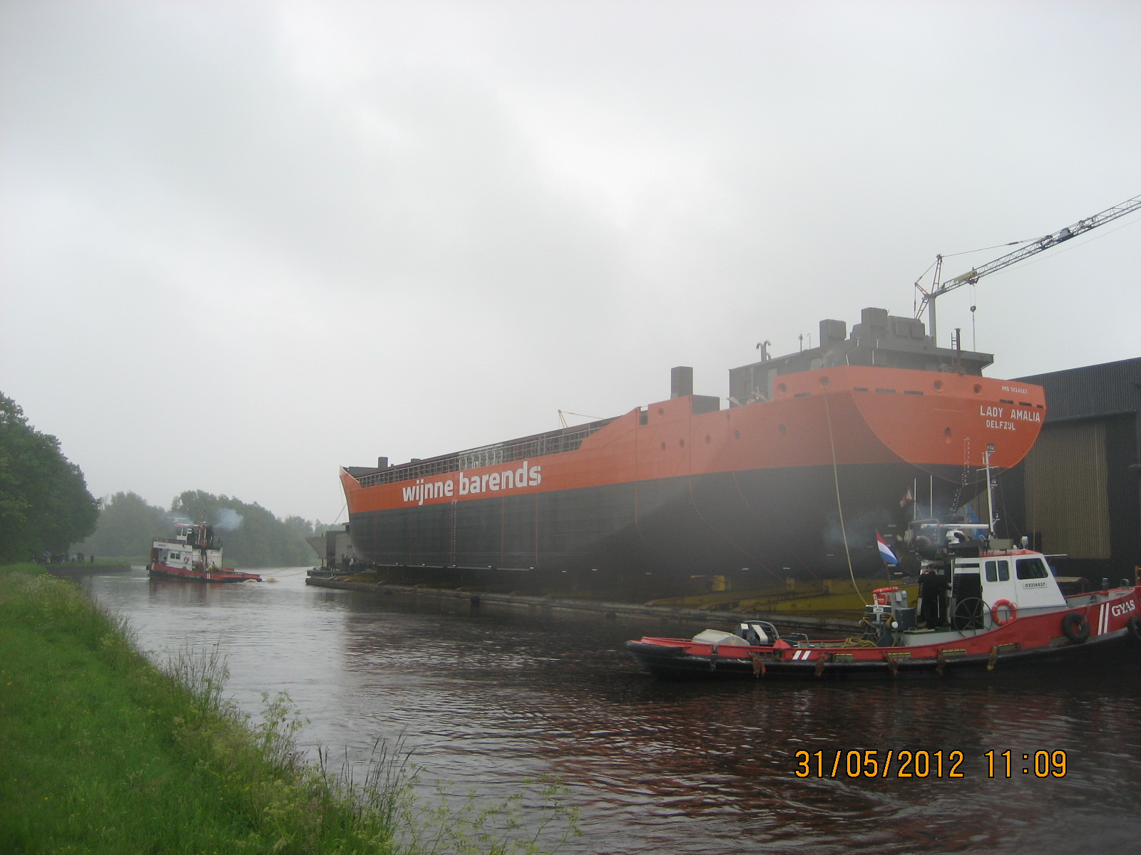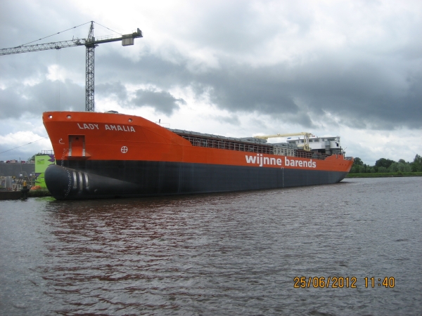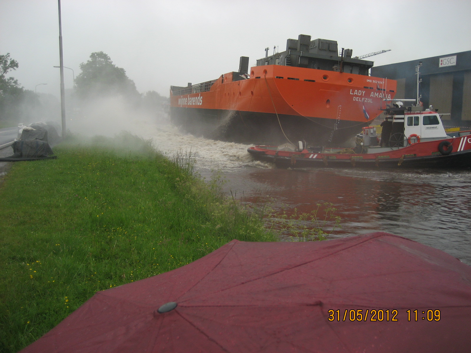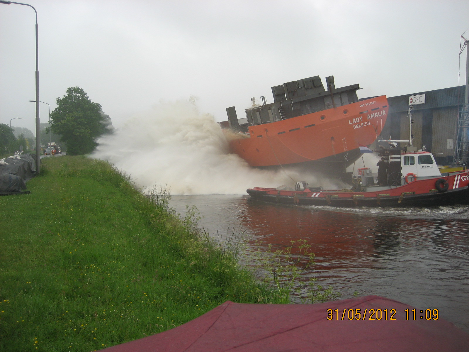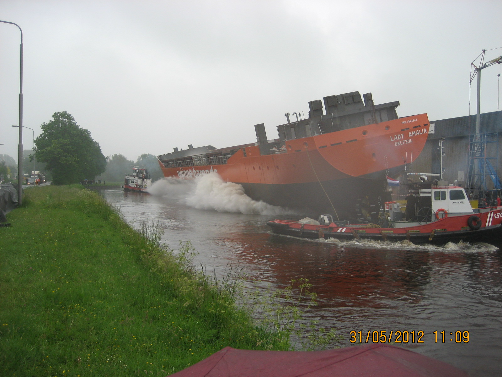 De tewaterlating 31 mei 2012, even na 11 uur, was het dan zo ver en werd de Lady Amalia te water gelaten.