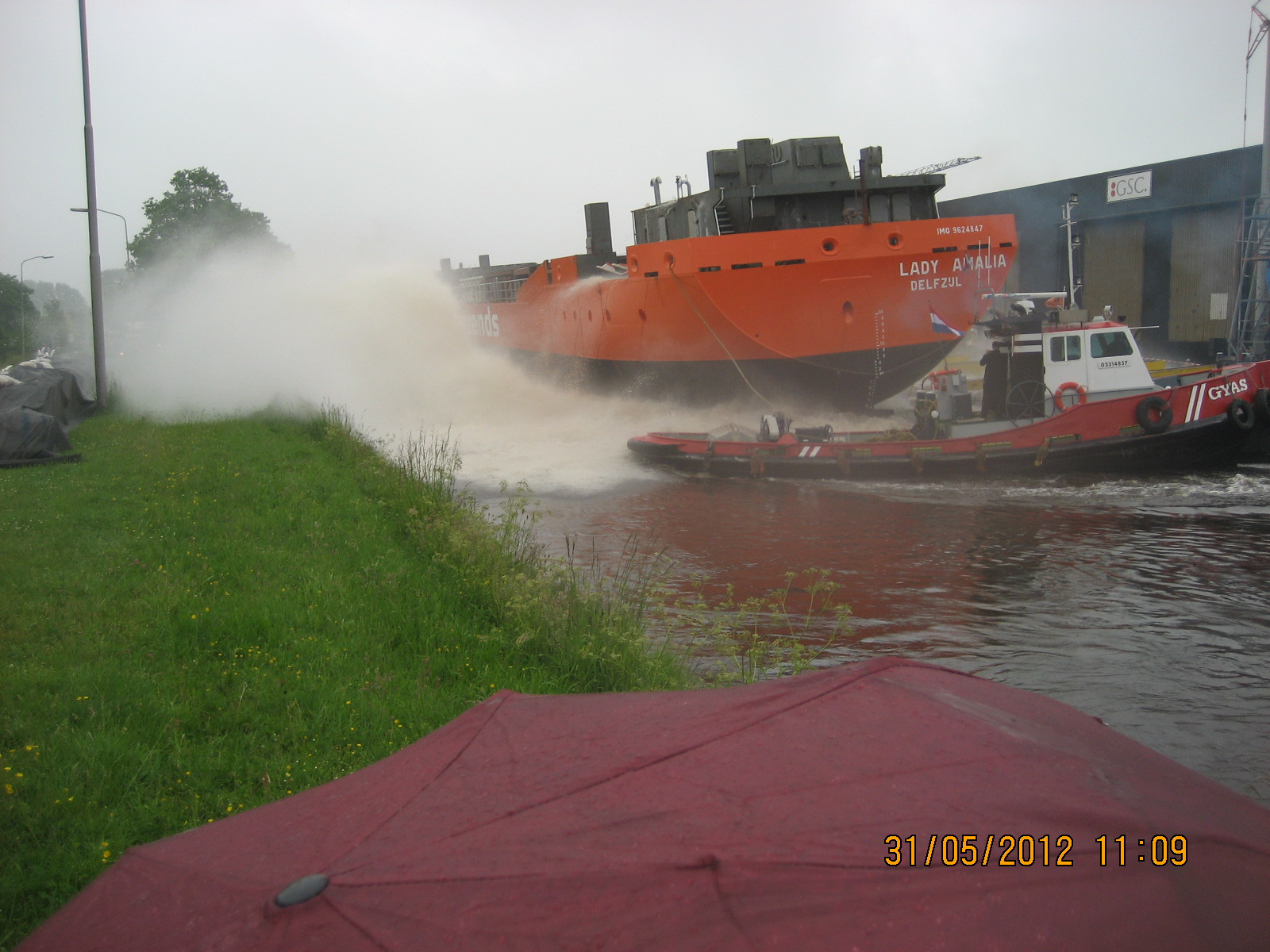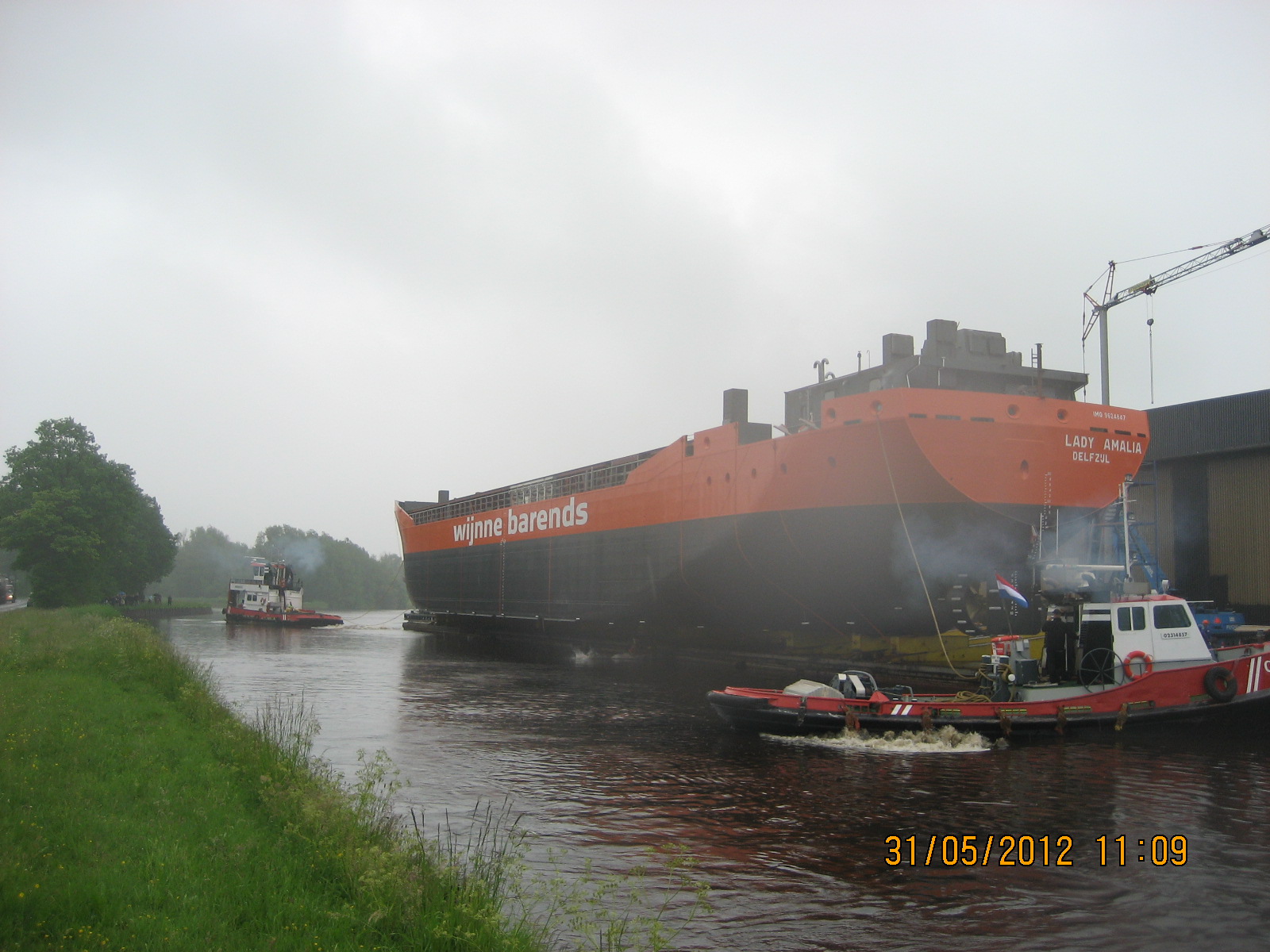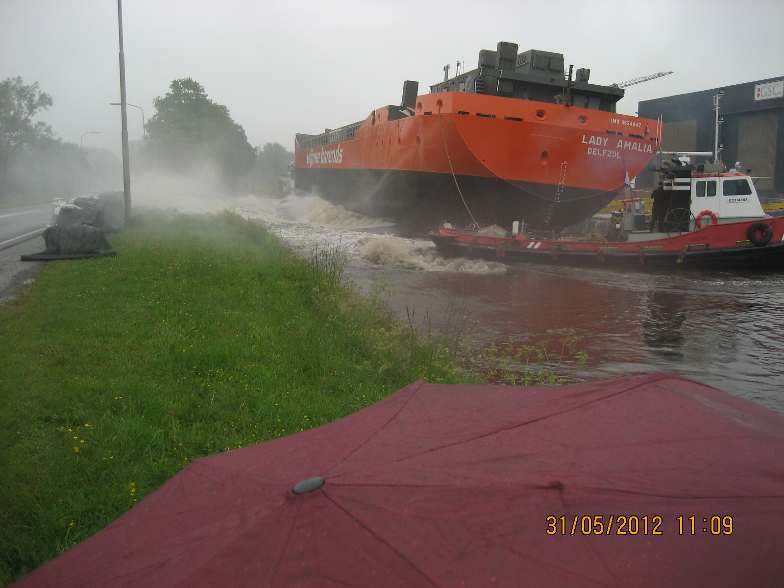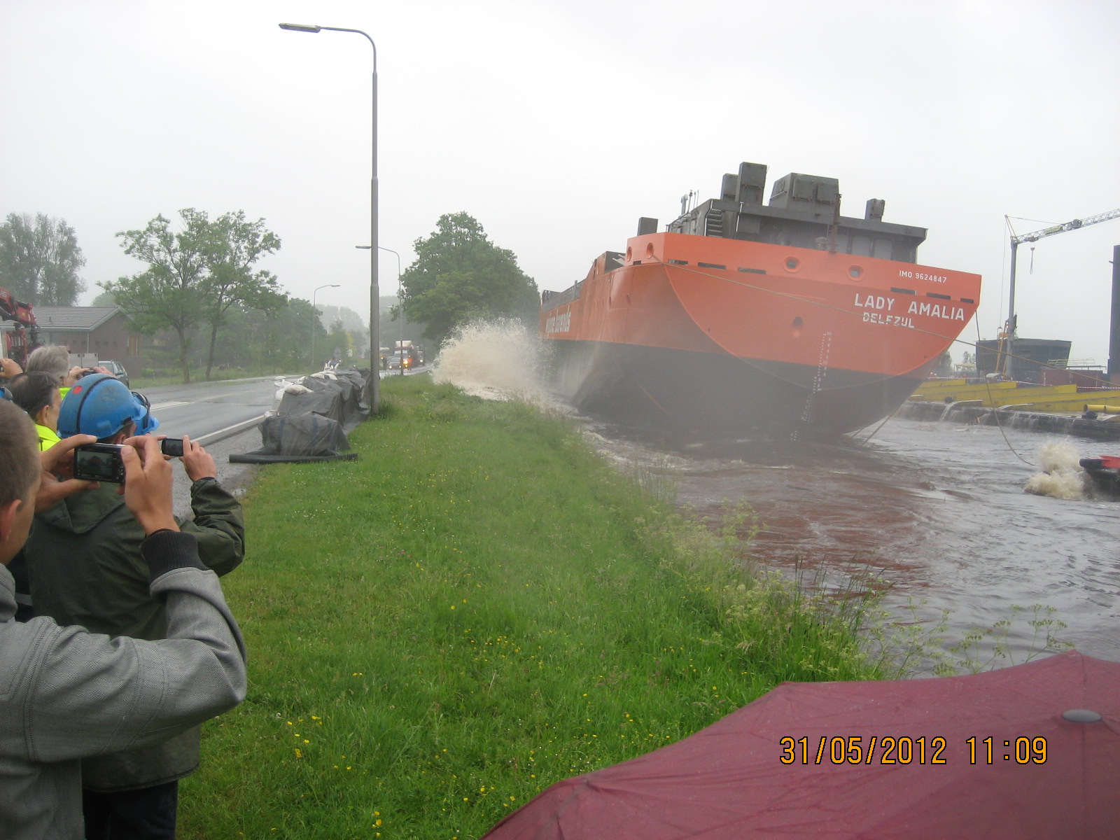 De tewaterlating 31 mei 2012, even na 11 uur, was het dan zo ver en werd de Lady Amalia te water gelaten.
