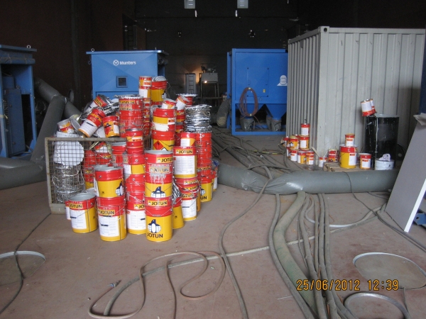 Een 'paar' lege verfblikken in het ruim