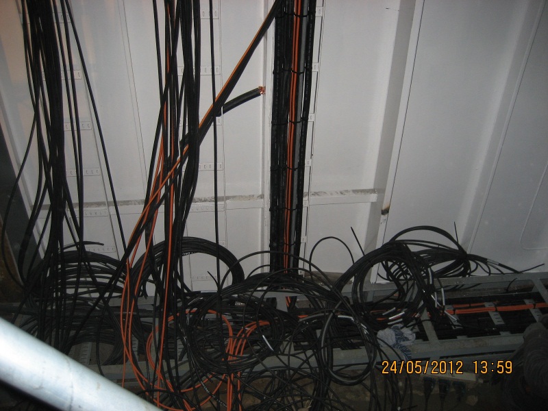 Bekabeling op de plaats waar de hoofdschakelkasten moeten komen.