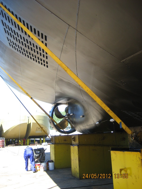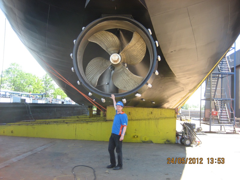 De schroef met straalbuis. Het roer missen we nog.