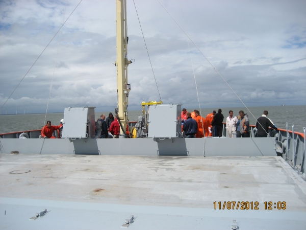 Proefvaart En dan volgt het vertrek van de bouwwerf in Waterhuizen naar Delfzijl, en de proefvaart op de Eems.