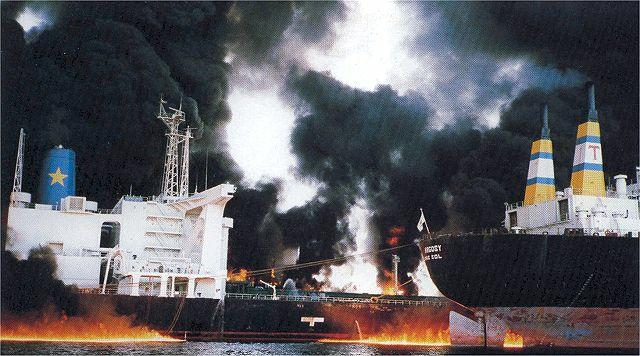 Hier een foto van de in 1976 gebouwde 'Seawise Giant', die in de oorlog Irak-Iran in 1981 het slachtoffer van een luchtaanval werd.